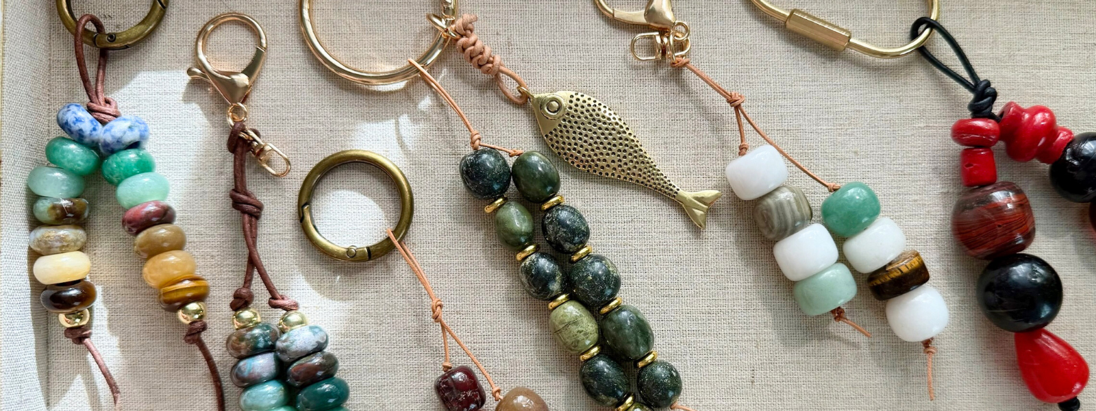 Each charm is carefully handmade using personally sourced semiprecious stone beads, making every piece truly one of a kind. Because natural stones vary in color, shape, and pattern, no two charms will ever be exactly alike. These subtle differences are what make each charm special—adding unique character, texture, and a touch of individuality to every design.